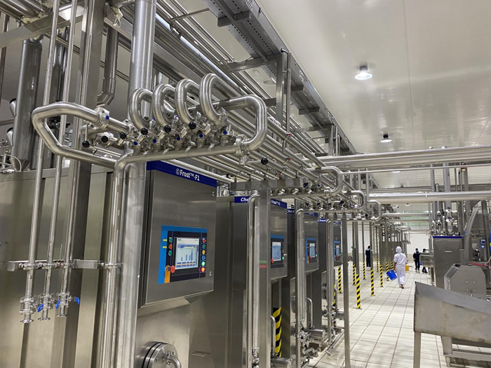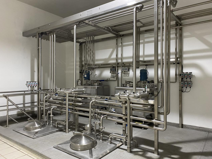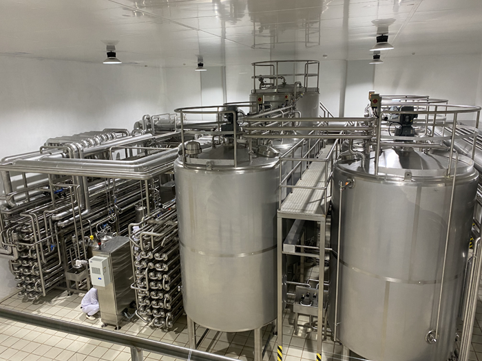 主要包括植物油和糖漿、巧克力儲存輸送處理系統、配料系統、巴氏系統、老化系統、巧克力及果粒添加系統、CIP站、能源回收系統、蒸煮系統、熱水系統等區域。